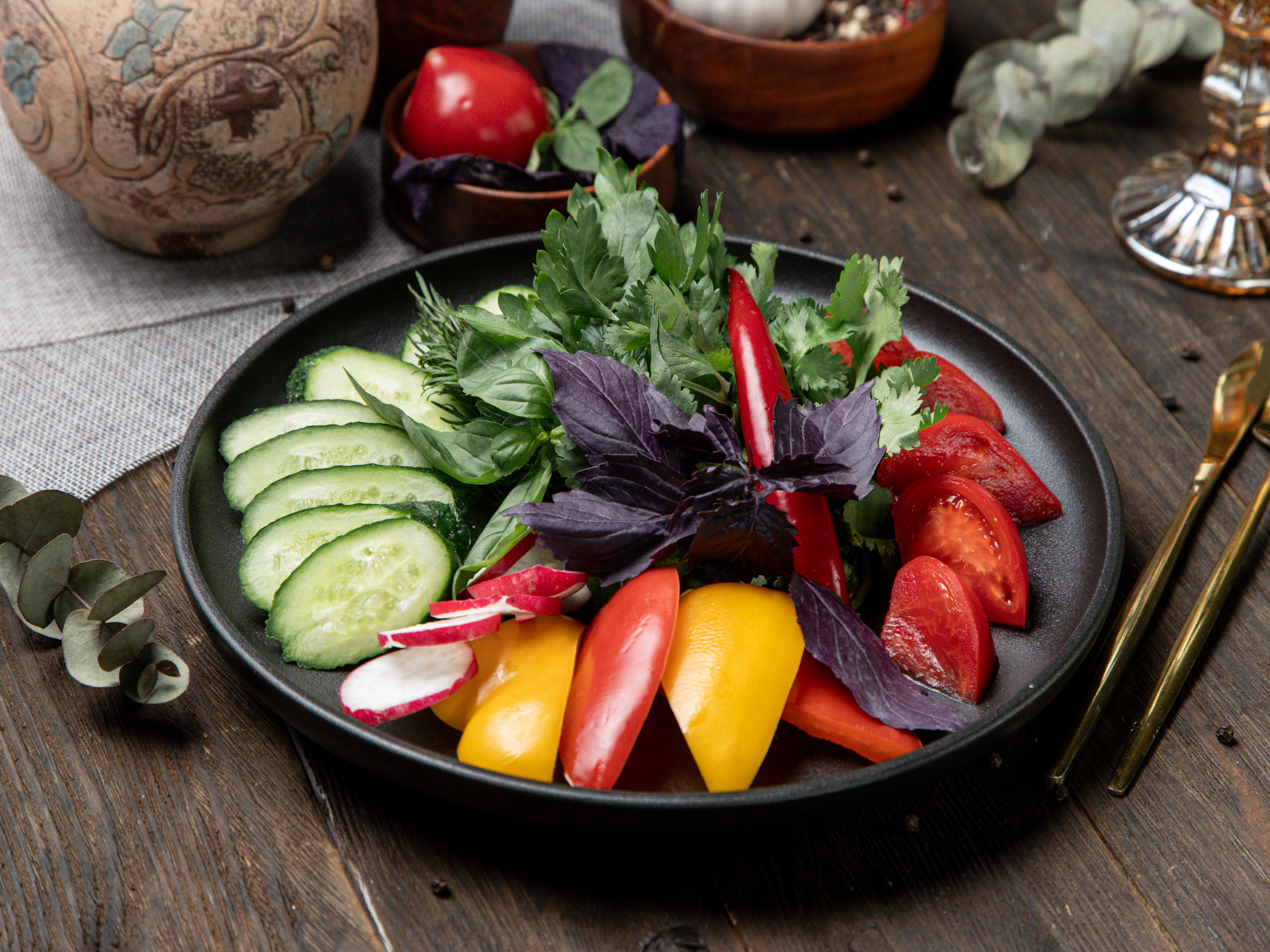 Ассорти из свежих овощей с зеленью
