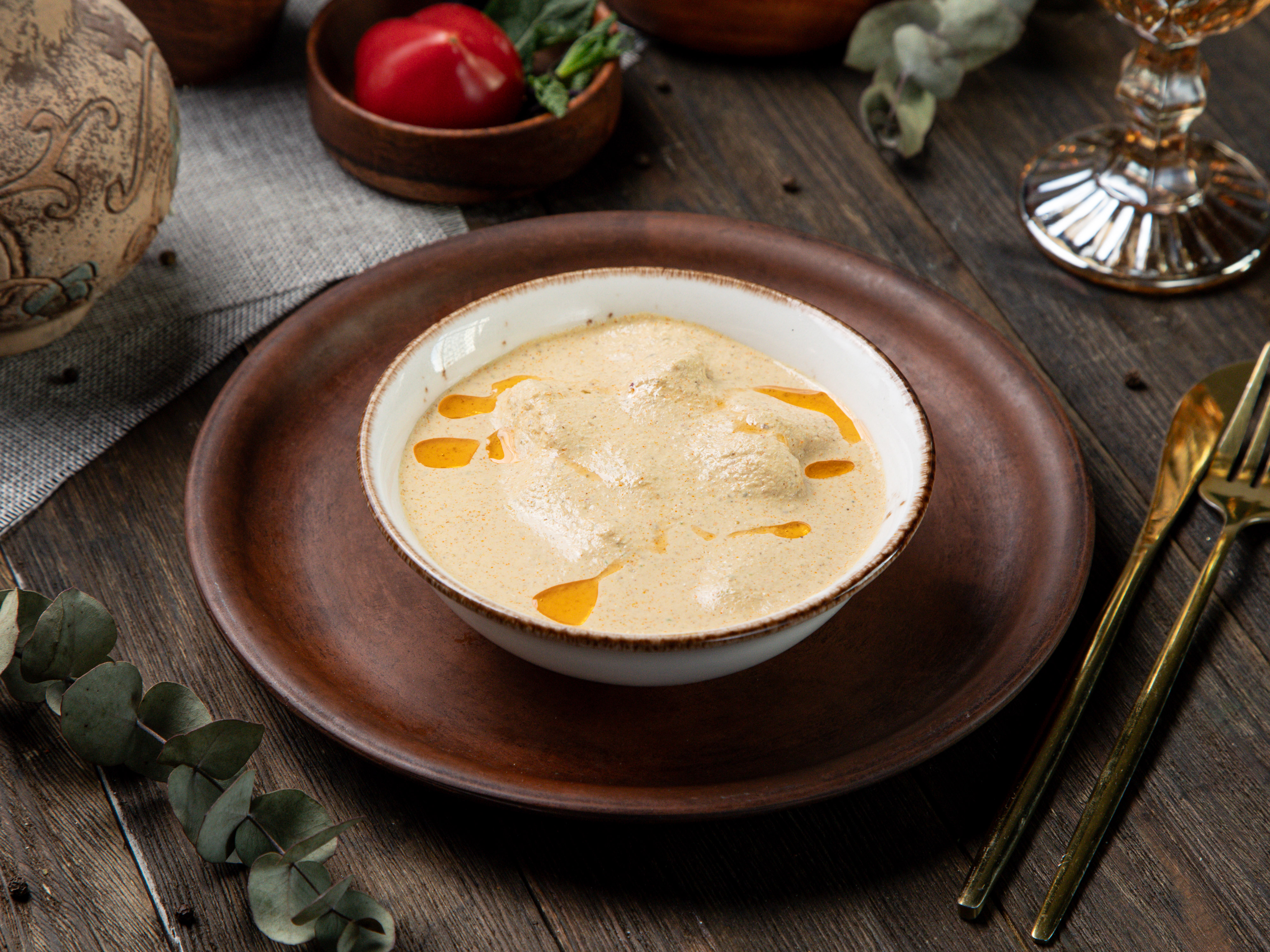 Нежная отварная куриная грудка под ореховым coуcoм и грузинскими специями.