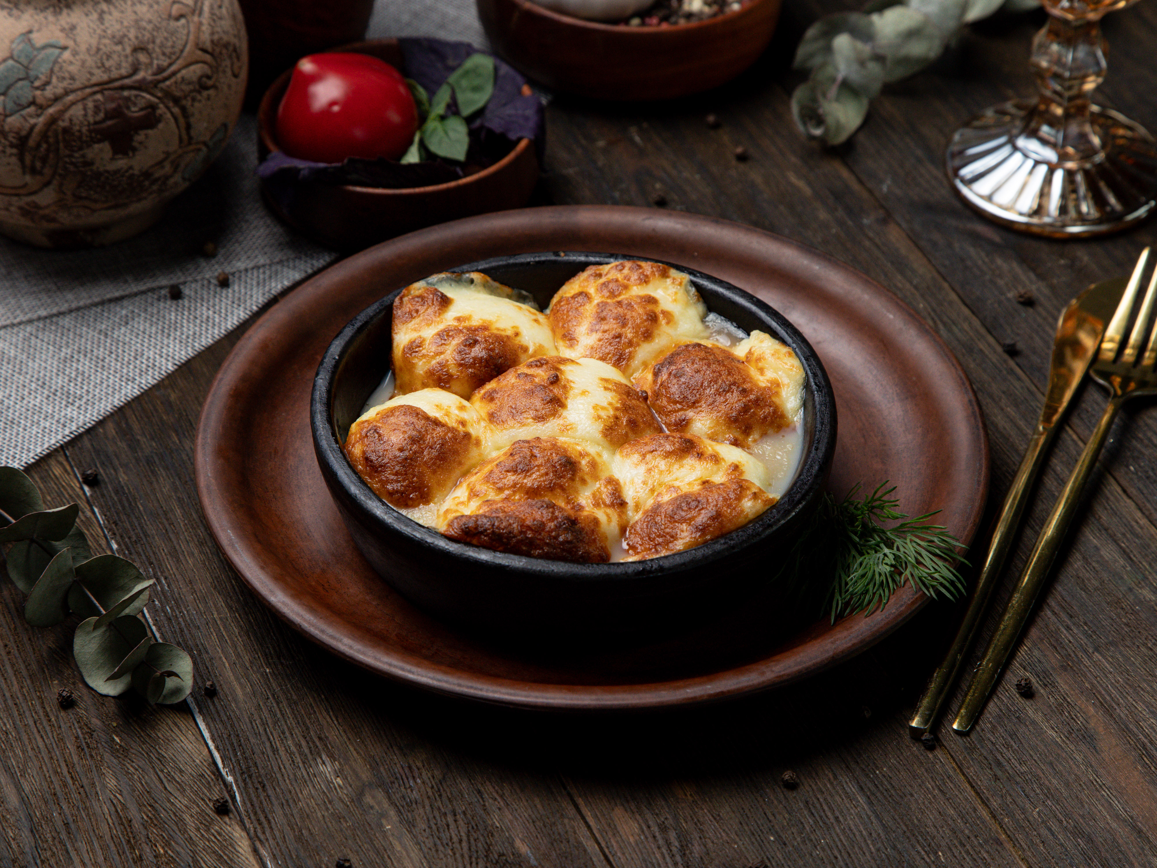 Шампиньоны запеченные на кеци с сыром сулугуни