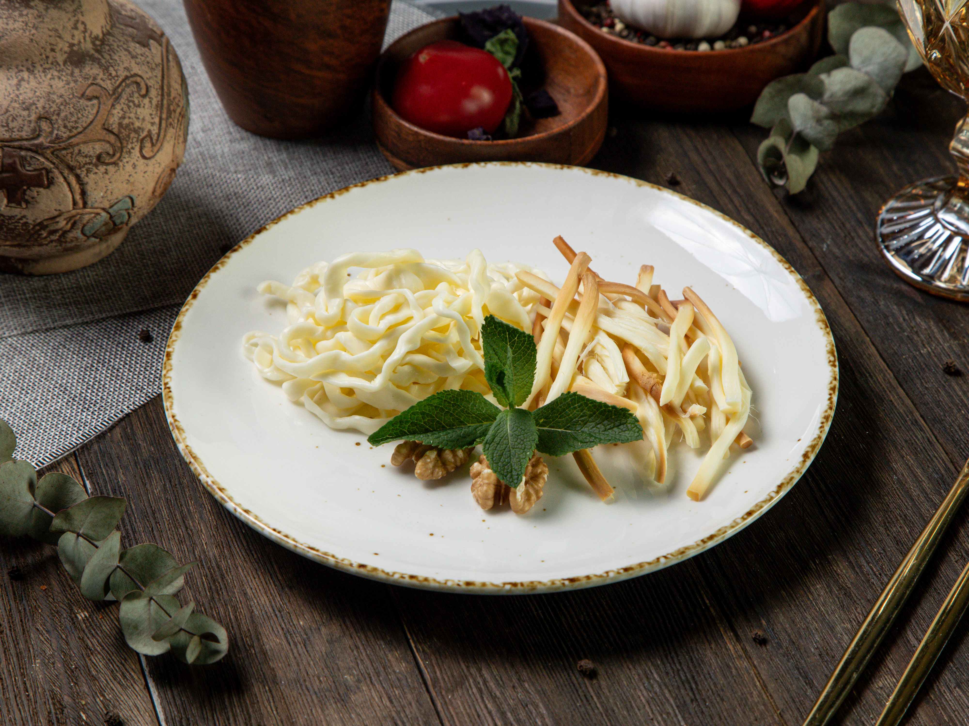 Традиционный кавказский домашний солёный сыр, в виде тонких волокнистых жгутиков